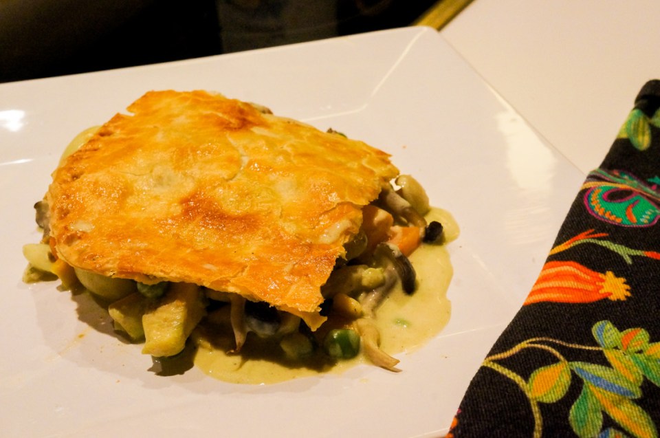 “A eurasian chicken pie that has been heavily influenced during the Portuguese cologne in Malacca, Malaysia. This version has an Asian twist where the use of spice is added in but still maintaining the traditional western way of making pies.”