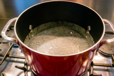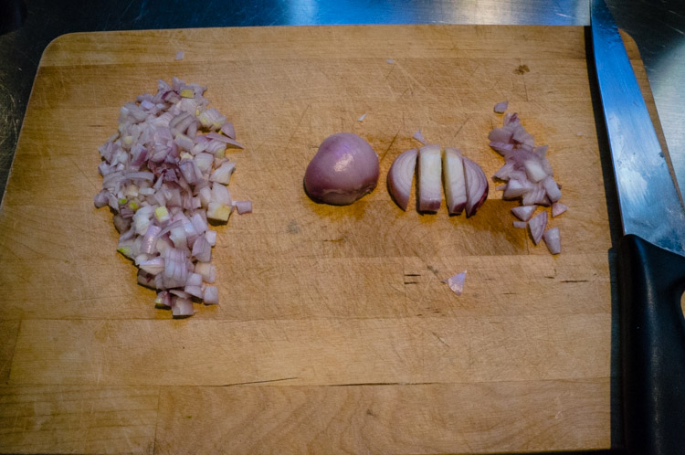 For the soup, fill in water half way up your pan and bring it to a boil. Finely chop the shallots and add it into the boiling water along with the chicken stock and vegetable stock. Lower the heat of the soup stock to a simmer and add in the sliced spring onions, sliced shitake mushroom, sliced chinese lettuce and seasoned with salt and white pepper. Once the crackling pork is done, leave it aside to cool. Use the jus from the pork as extra flavouring for the soup. Check again for it’s seasoning.