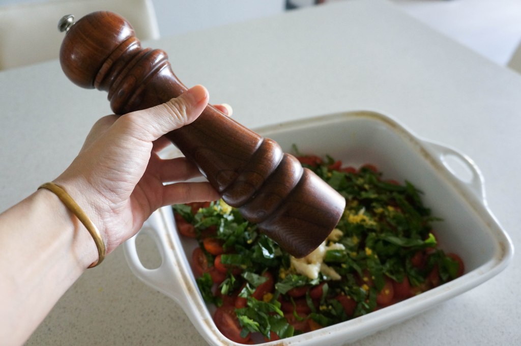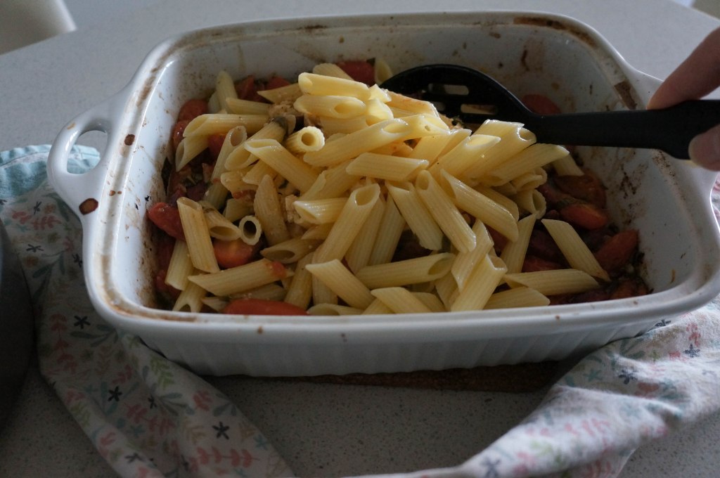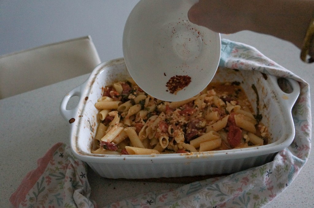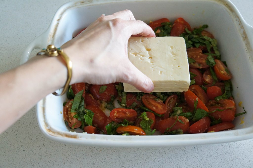 “Pasta oven bake with cherry tomato and feta.” Perfect for summer.